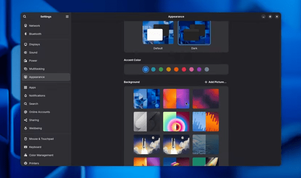 GNOME 49 includes multiple new background sets — not just one or two images. Each version brings a mix of abstract patterns, soft gradients, and nature-inspired designs.
