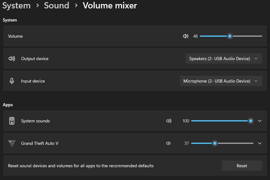 Even stranger, when you open Windows Volume Mixer (right-click the 🔊 speaker icon → Open Volume Mixer), the GTA V app volume slider appears greyed out or set to an unchangeable value (e.g., 1% or 0%).