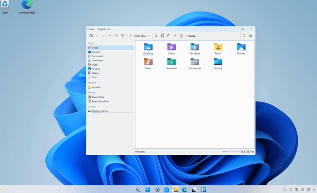 - User Interface: The desktop, theme, wallpaper, and icon set mirror Windows 11. The Start Menu even resembles Windows, complete with links to Microsoft Edge, OneDrive, and Office 365 apps.