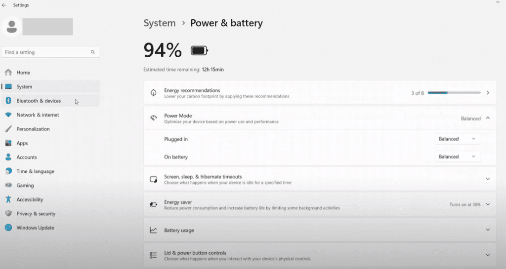 - In Settings, go to System > Power & Battery.