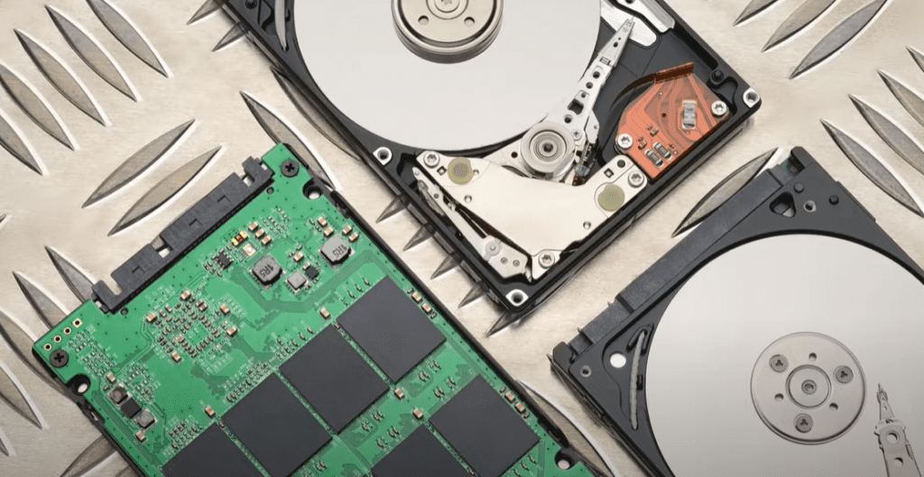 Hard Drive (HDD): A hard drive consists of multiple parts, including a printed circuit board (PCB), storage media, read/write heads, and an outer casing. Data is stored on the media, which the heads read and the logic board (PCB) converts into readable data for the user. Hard drives rely on moving mechanical components, making them susceptible to physical damage from drops or shocks.
