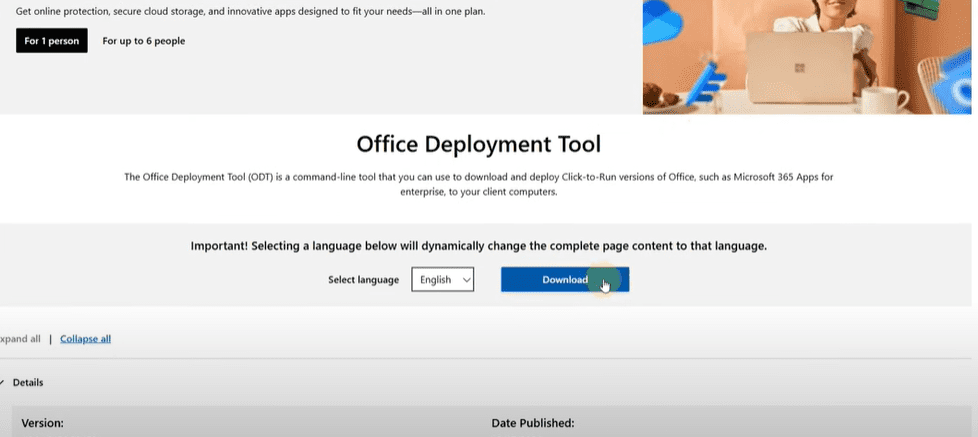 - Open your browser again and search for Office Deployment Tool or directly visit Microsoft Download Center.