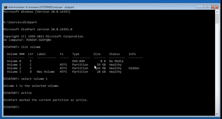 - Select “Repair your computer” > Troubleshoot > Command Prompt.