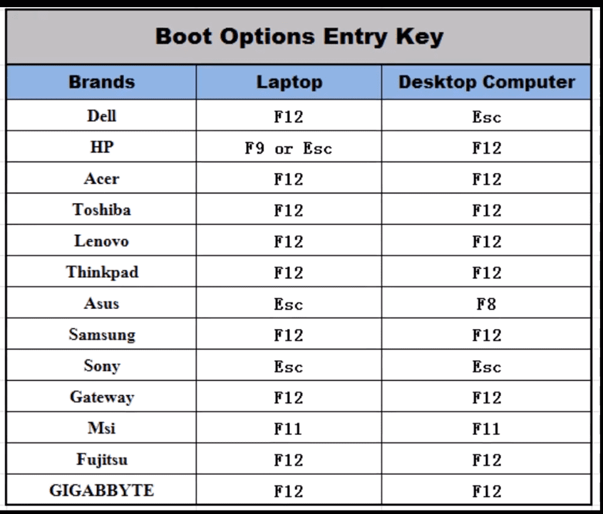 - Common keys to enter the BIOS include F2, Delete (Del), or Esc.