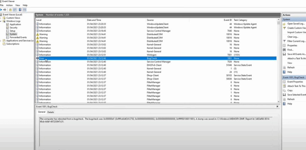 - Go to: Windows Logs → System