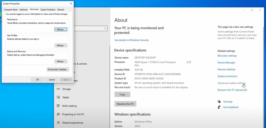 - Go to Advanced System Settings