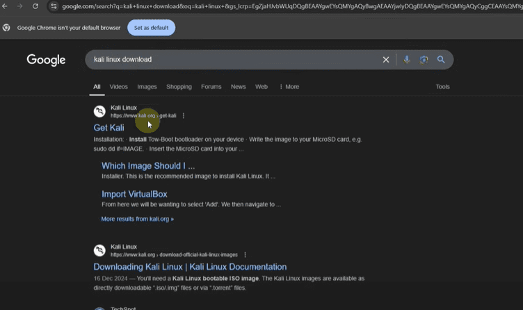 - Open your browser and go to the official Kali Linux website: https://www.kali.org.