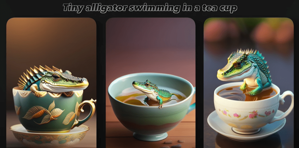 - Enter a descriptive prompt, such as “a tiny alligator swimming in a teacup.”