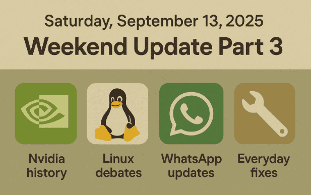 That wraps up Part 3—and the full weekend update! From Linux stability debates to Nvidia’s iconic GPUs and WhatsApp’s new tools, these stories highlight how technology constantly shifts between history, progress, and hands-on problem solving. Stay tuned for more updates throughout the week.