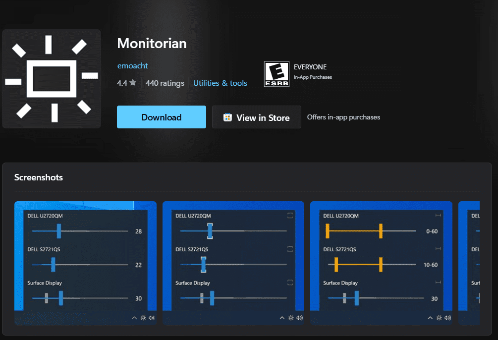 - Download Monitorian App: This free, lightweight tool lets you control the brightness of external monitors directly from your desktop.